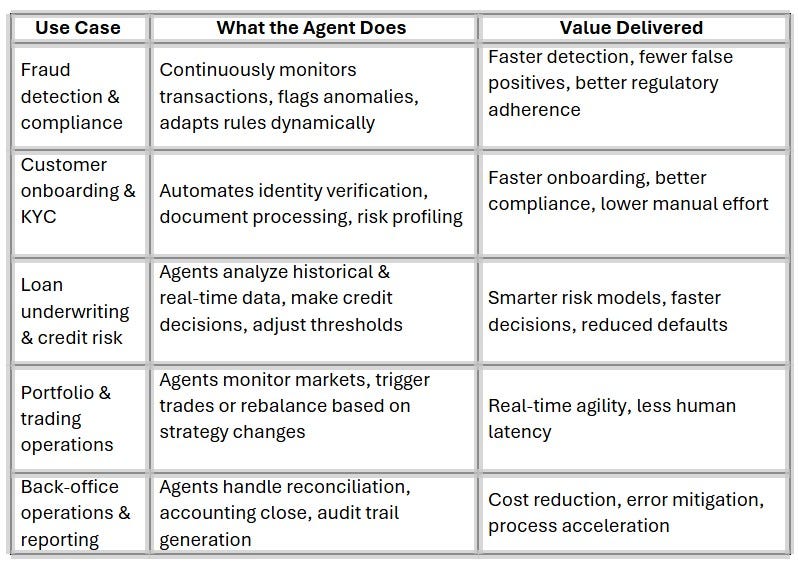In financial services, that means shifting from “AI suggests” to “AI executes” — whether for fraud detection, portfolio rebalancing, onboarding, or compliance.